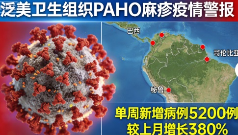 发布时间:2026 年 2 月 4 日(周三),泛美卫生组织 (PAHO/WHO) 发布最新流行病学警报:2026 年前三周(1 月 1-21 日),美洲 7 国累计报告1031 例麻疹确诊病例,与去年同期相比激增43 倍;2025 年全年该地区共报告14,891...